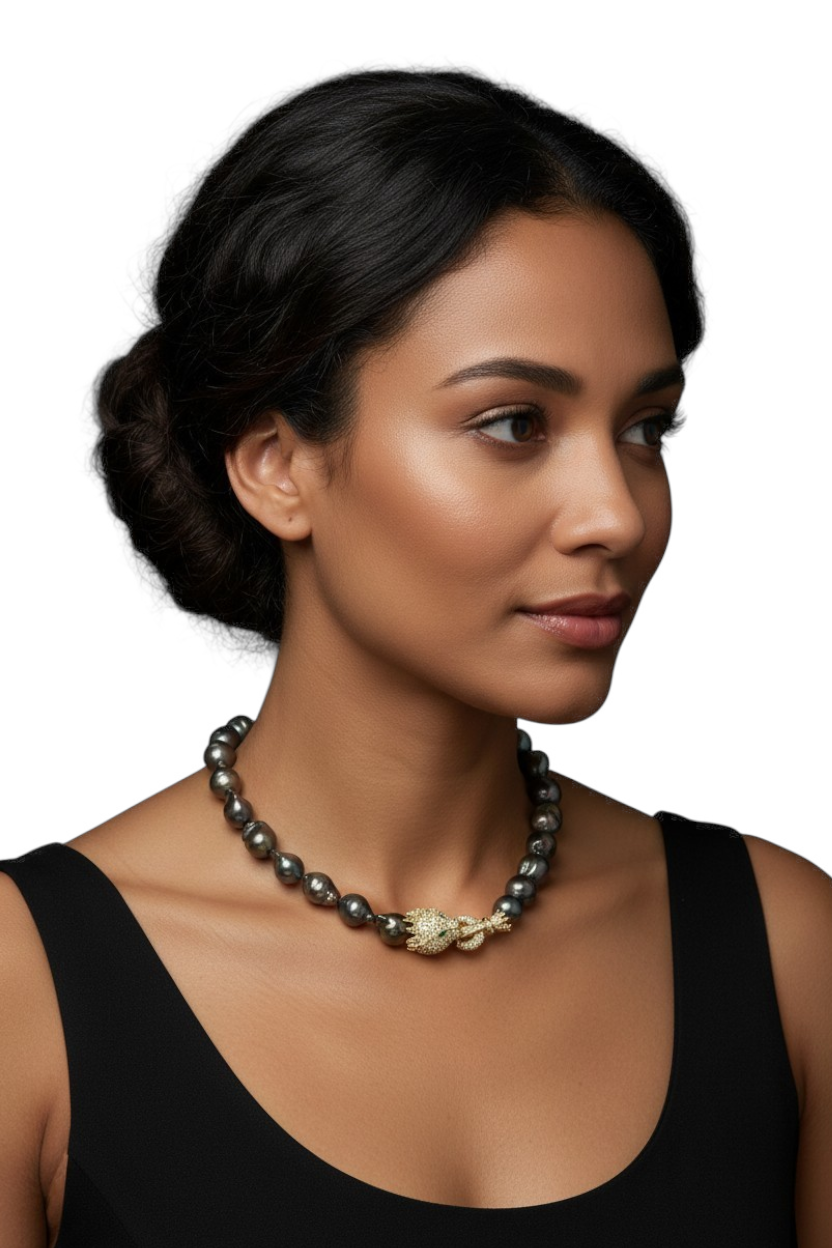 Con le famose perle Scaramazze nere.