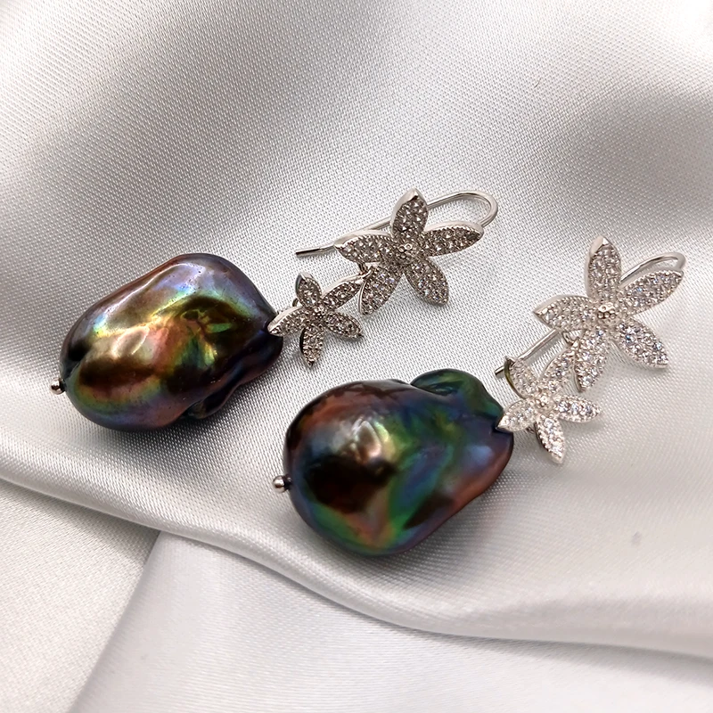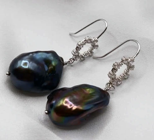 Splendido modello di orecchini con le perle scaramazze bianche , grigie, o nere a scelta (22,5 x 15 mm)