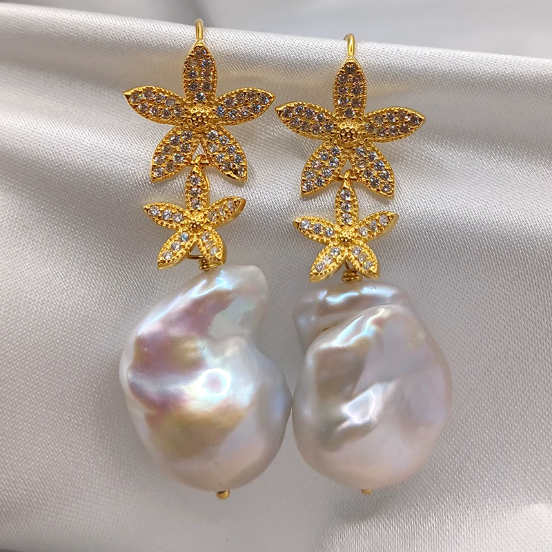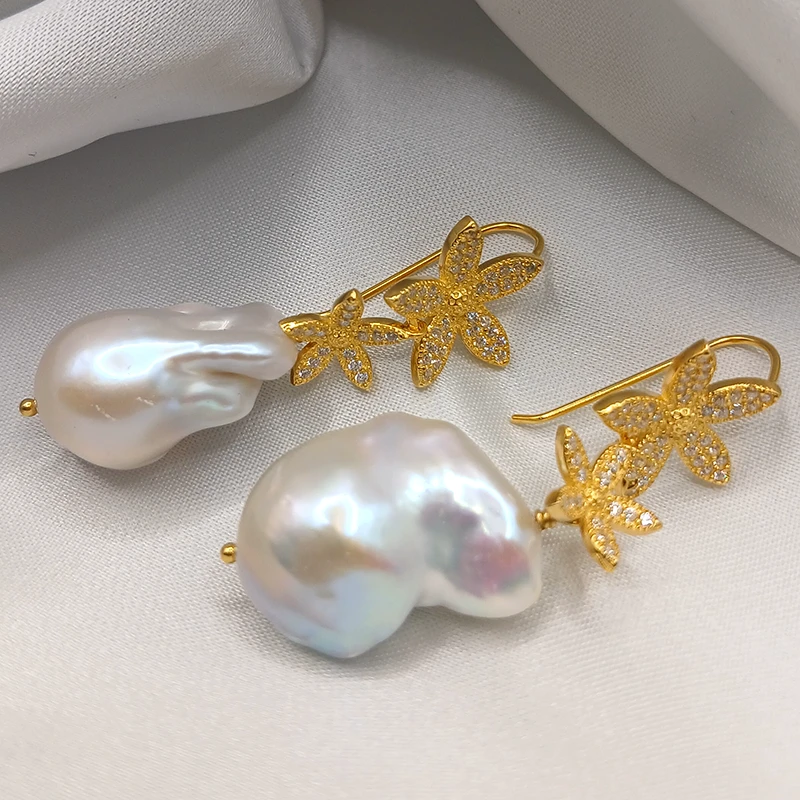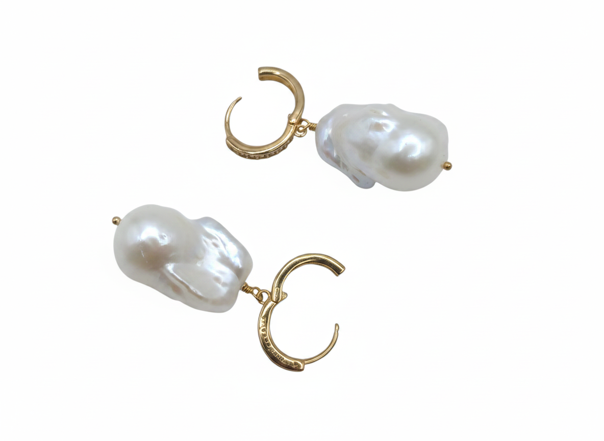 Splendido modello di orecchini con le perle scaramazze bianche (22 x 15 mm)