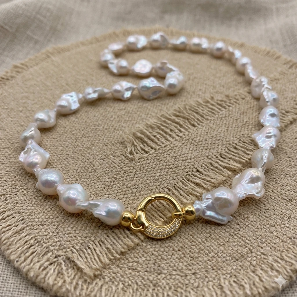 La Collana Grandi Perle Scaramazze bianche è il gioiello che trasforma ogni outfit in un capolavoro. Con perle scarmarzze sinuose, ciascuna unica, questa collana infonde personalità e stile senza eguali.