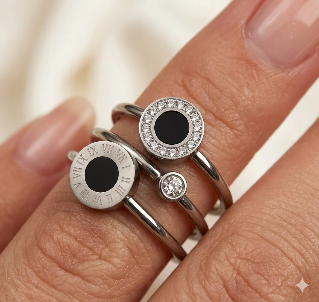 Straordinari anelli realizzati in acciaio inossidabile 316Â L colore argento.