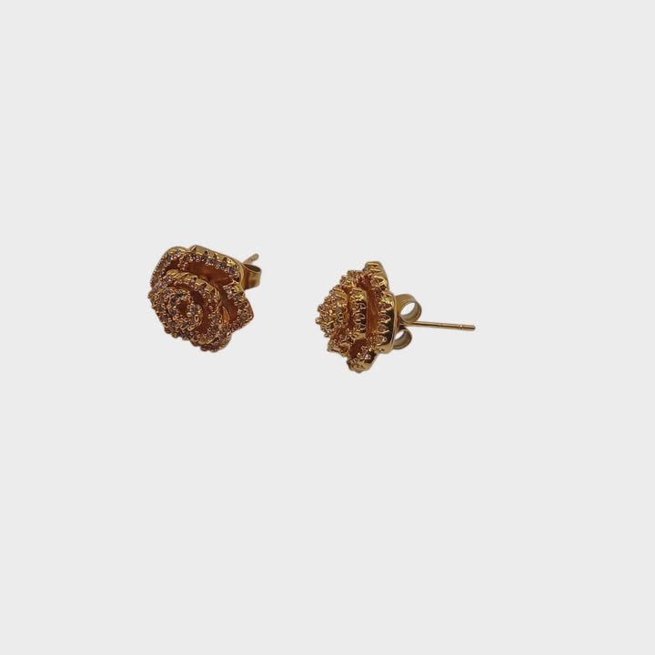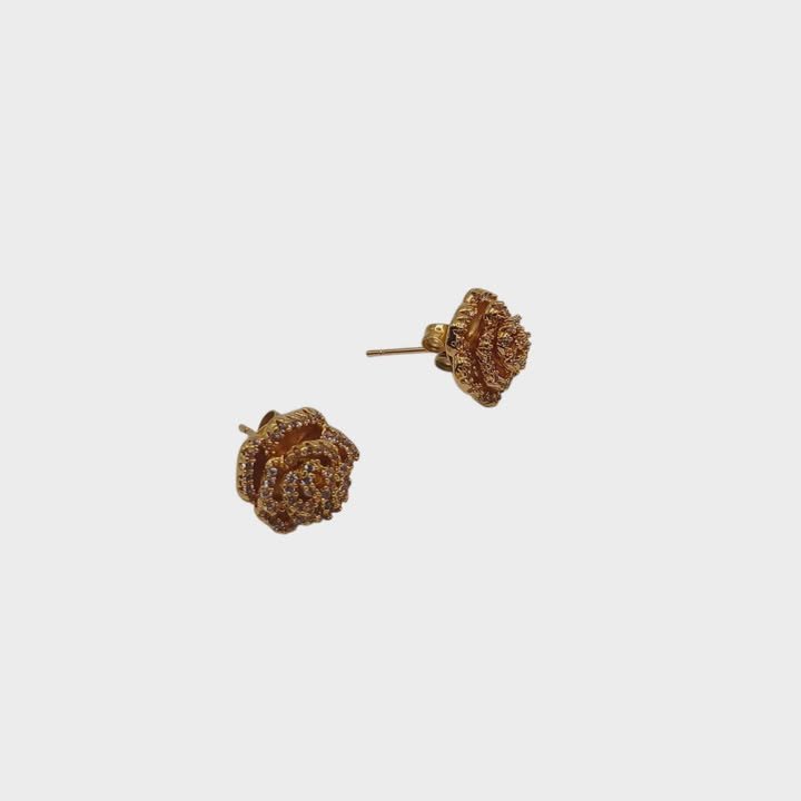 A forma di roselline aperte,tempestate di zirconi bianchi.